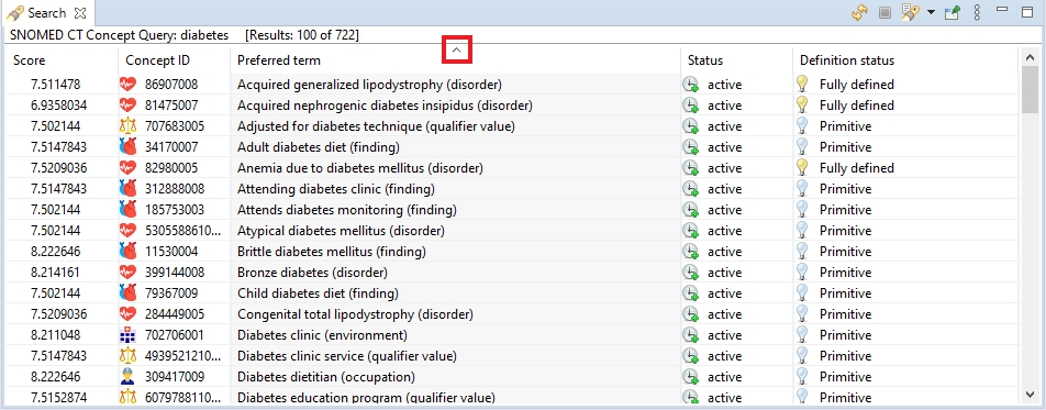 The results are sorted based on a similarity score. The sorting can be changed by clicking on the column headers.