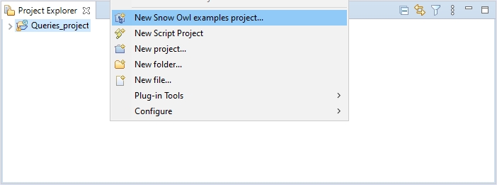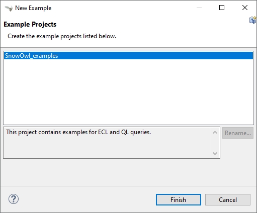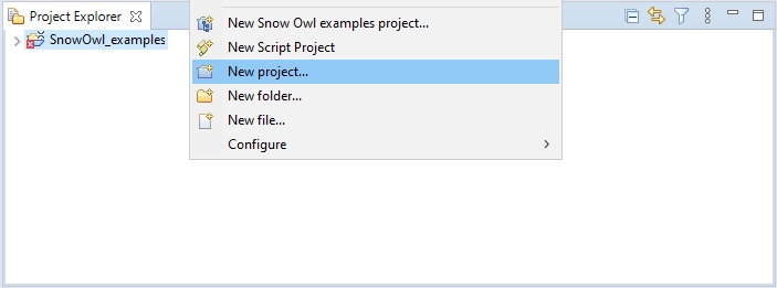 Select the New Snow Owl examples project... option to reveal the wizard. Select SnowOwl_examples, and click Finish to create the project folder.