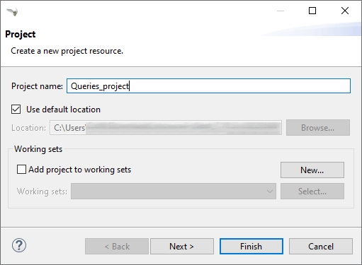 Select the New project... option to reveal the wizard. Specify the project name, and click Finish to create the project folder.