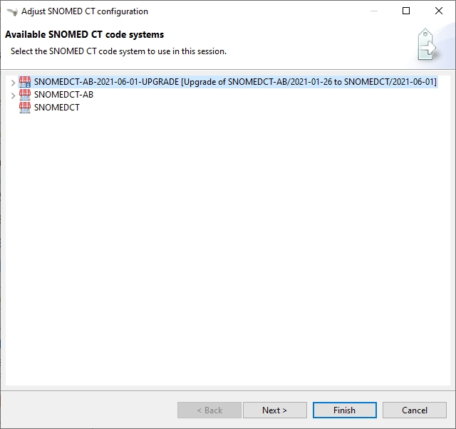 3️⃣ Press the Upgrade Code System... button and chose the Code Systems that take part in the upgrade process. Then press Finish to start the upgrade process.