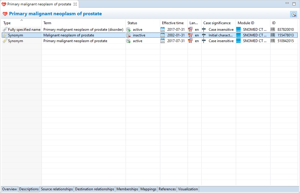 The Description Page shows information about the descriptions associated with the selected concept such as: