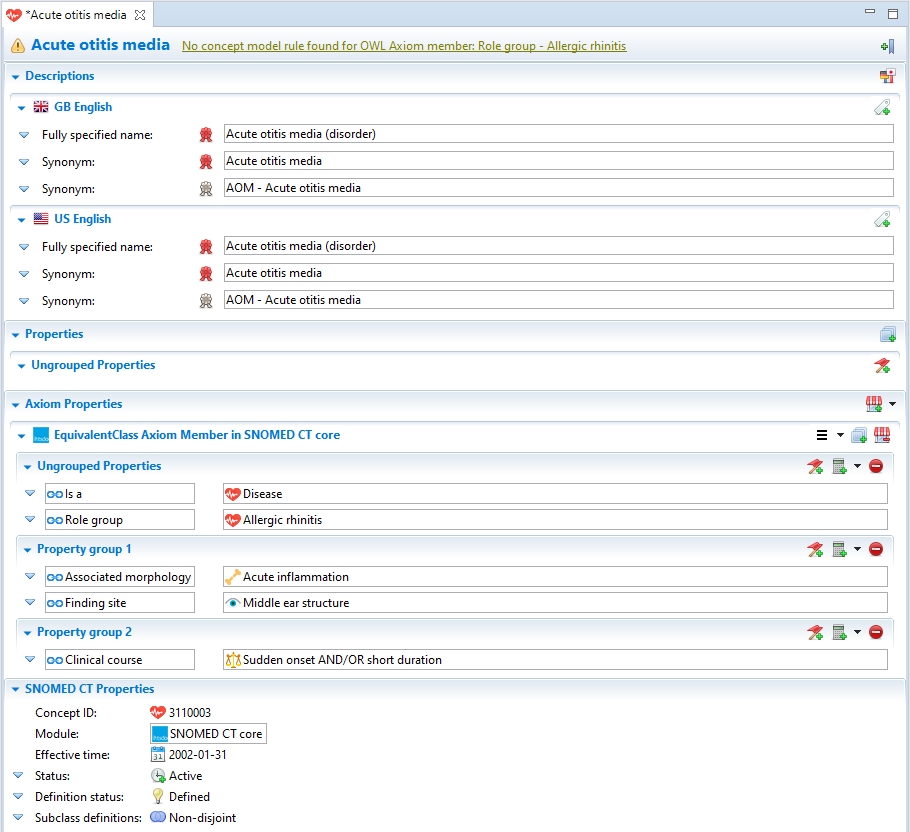 When a new relationship is added, values for the attribute type and the target concept are classified either as Sanctioned or as Unsanctioned. Sanctioned means that those values are valid based on the Machine Readable Concept Model (MRCM), while Unsanctioned values are invalid based on MRCM rules.