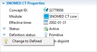 Switching between the two different modes changes the SNOMED CT Concept Editor to display stated and additional characteristic types in authoring mode, or inferred and additional characteristic types in browsing mode. When authoring mode is selected, the editor allows modifications to the concept by enabling the addition of both sanctioned and unsanctioned attributes. The attribute editing fields are powered by the Machine-Readable Concept Model (MRCM), where for any particular concept domain, various attribute and concrete domain constraints are specified. The editing is not limited to pre-defined attributes only, users can always deviate from the model if necessary.