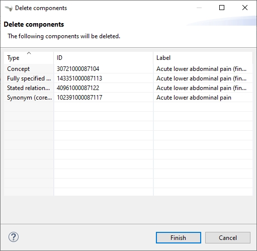 Unpublished concepts can be deleted from the SNOMED CT View.