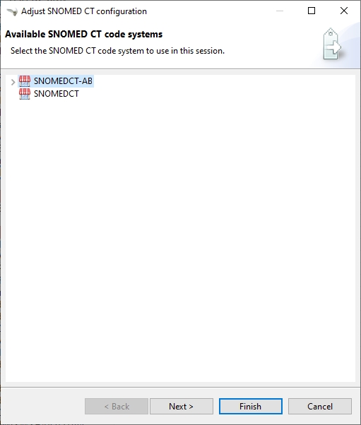 Once starting the application, you will be prompted with a selection window where you can choose the SNOMED CT Code System to use in your session.