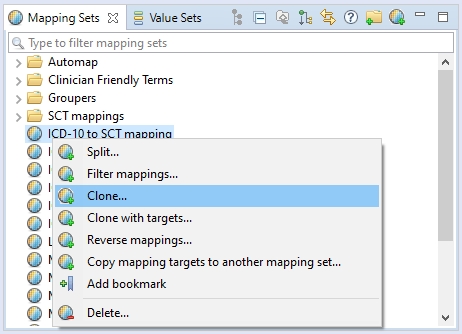 Mapping Sets can also be cloned if no splitting is required. There are two ways of cloning a Mapping Set: