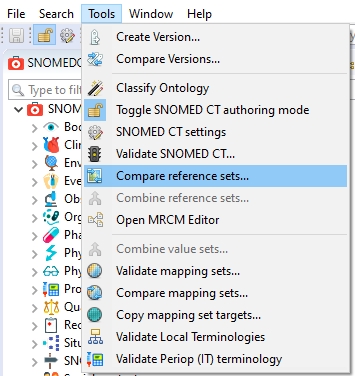 To execute a Reference Sets compare, navigate to Tools > Compare Reference Sets... menu item.