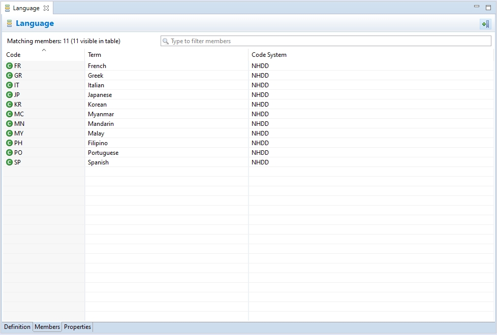 The text field allows filtering members, similar to the Reference Set Editor.