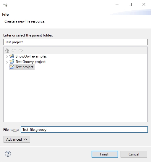 Enter a file name with a .groovy file extension (e.g. Tet-file.groovy), and click Finish.