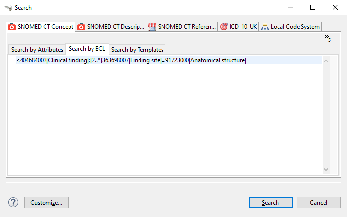 The Sech by ECL tab can be used to execute ECL based semantic searches.