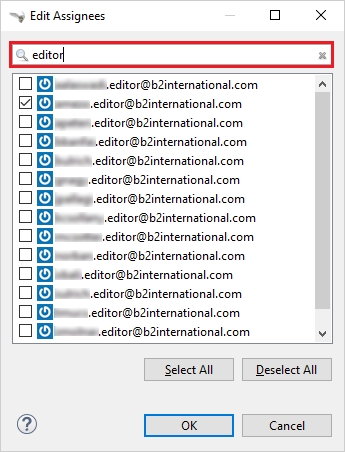 button. Users can be filtered by typing text in the entry field on the top of the wizard. There's also an Assign to me option.