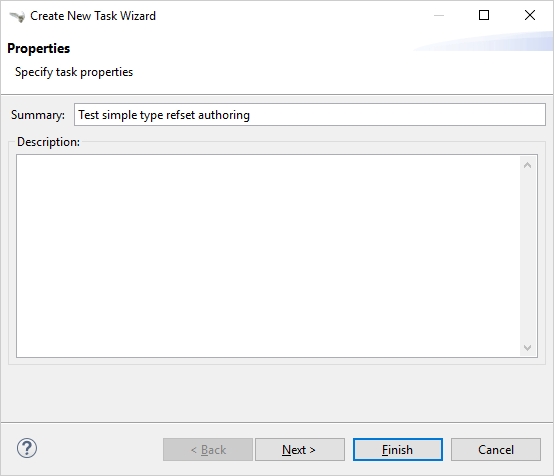 New task button in the Task List View. On the first page of the wizard, you are prompted to specify the following properties.