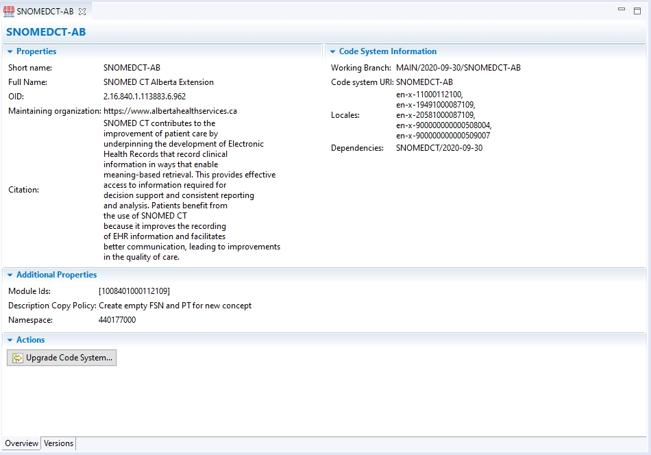 2️⃣ Navigate to the Code Systems View and double click on the Code System which has an available upgrade to reveal its properties in an Editor.