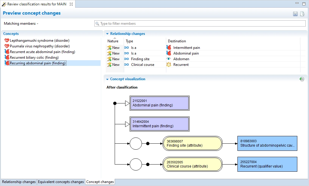 The content of this page can also be filtered by term or ID. Double-clicking on a concept in the Concepts section opens its editor.