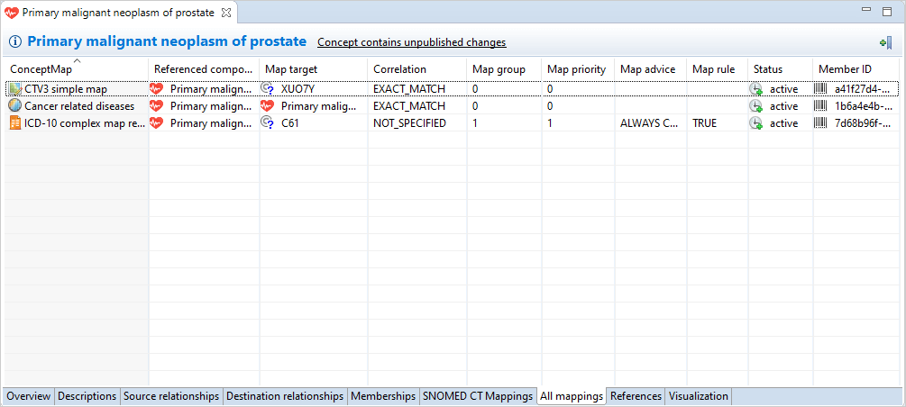 The All Mappings Page is read-only and displays information related to the Reference Set, MappingSet membership of the given concept.