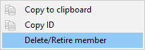 By right-clicking on a membership you are able to delete or retire a component.