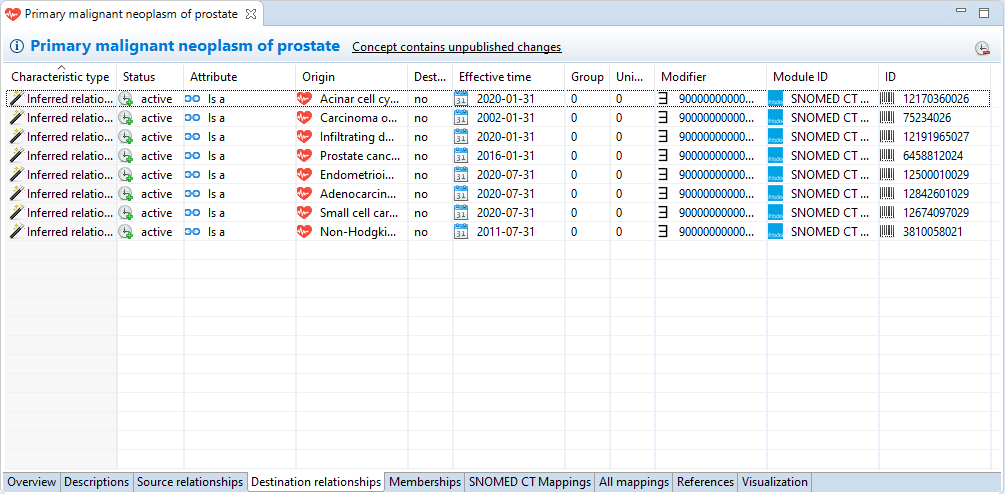 Destination relationships originate from a different concept and point to the given concept.