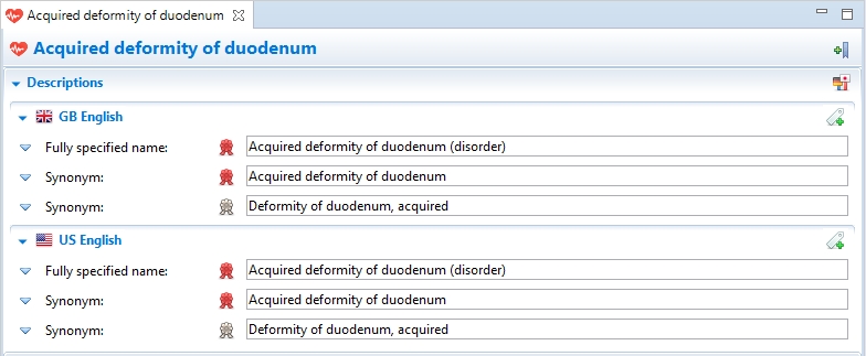 rosette icon, a red icon means that the description is preferred in the specific language reference set, while a grey icon means that the description is acceptable.