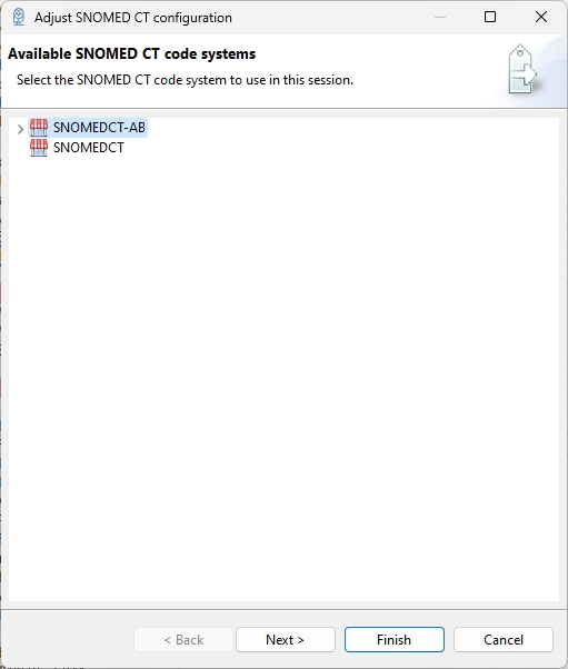 Once starting the application, you will be prompted with a selection window where you can choose the SNOMED CT Code System to use in your session.