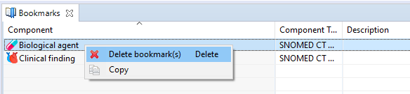 Right-click a component in the Bookmarks View to reveal the Context Menu with the