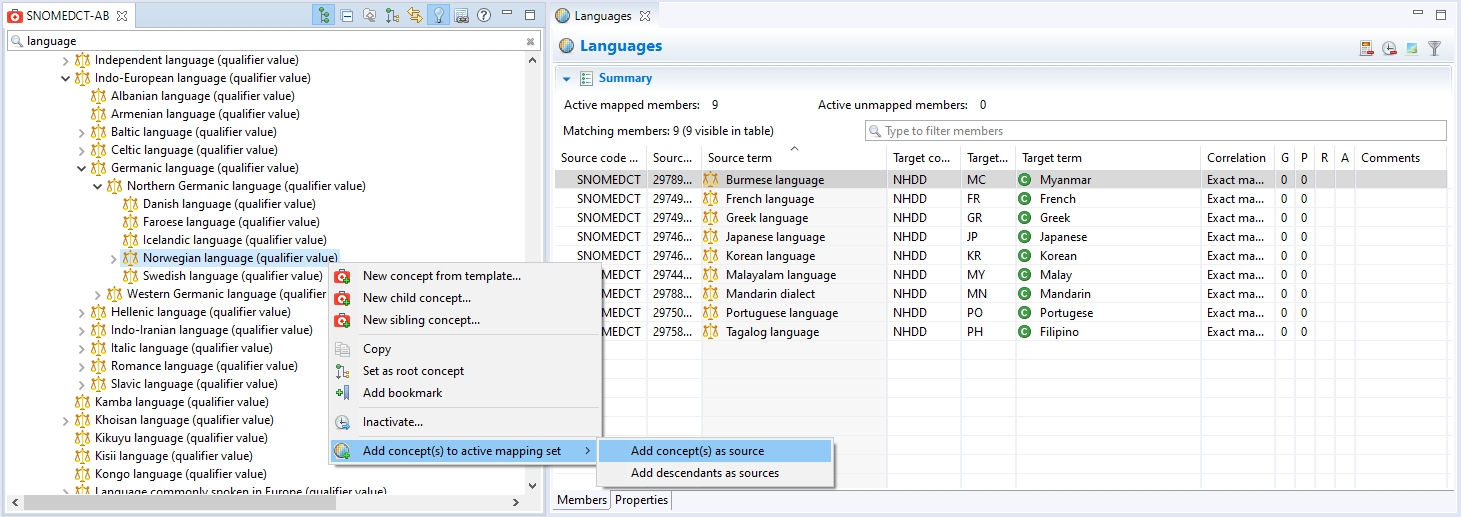 There is also a way to add a concept or descendants of a concept as a source to an active Mapping Set via the Context Menu.