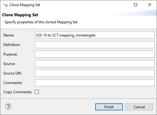 The action brings up the dedicated Clone Mapping Set Wizard where the target Mapping Set properties can be specified.