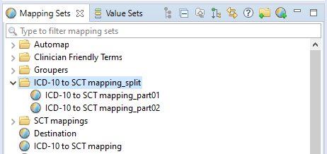 As a result of this operation, the target Mapping Sets are grouped within a dedicated folder that is created as part of the split action.