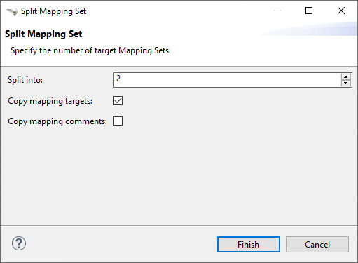 The dedicated Split Mapping Set Wizard allows the user to set the number of Mapping Sets to split the source Mapping Set into.
