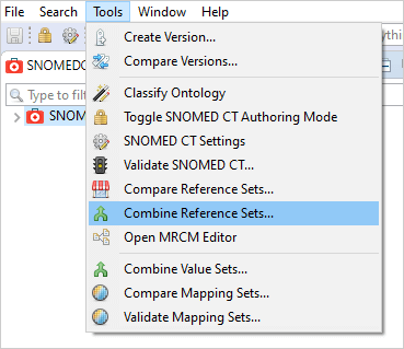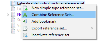 Combining Reference Sets can be performed either by invoking the Tools > Combine Reference Sets… menu or by right-clicking on a Simple type Reference Set and selecting Combine Reference Sets.