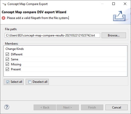 Export the compare results separated by semicolon to a text file button which enables users to export the necessary information from the Map Compare Result.
