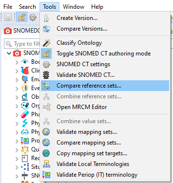 To execute a Reference Sets compare, navigate to Tools > Compare Reference Sets... menu item.