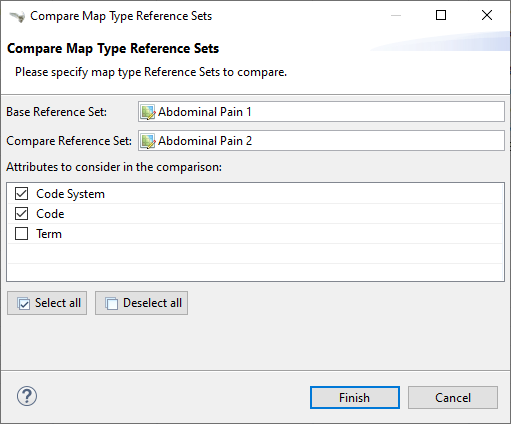 A wizard opens where the Base and the Target Reference Sets can be selected from the lists for comparison.