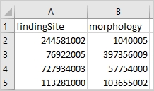 }For this template, one must create a tab or comma-separated input file with the following two columns: morphology, findingSite. Then each individual row must represent a potential concept replacement value.