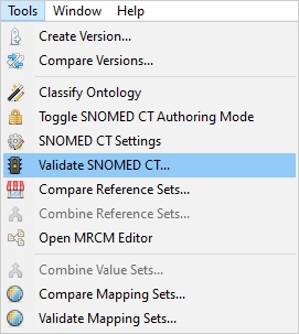 icon in the main toolbar, or simply via Tools > Validate SNOMED CT... .
