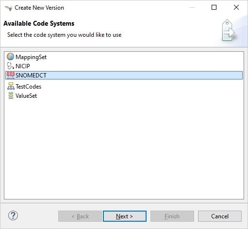 Create versionbutton in the main toolbar.Select a Code System.