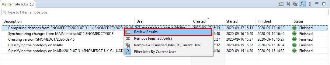Review resultsContext Menu optionIn the pop-up dialog, hit