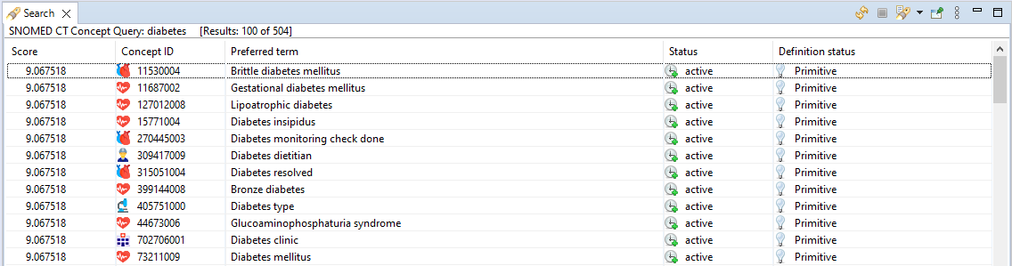 Double-clicking on a concept displayed within the search results opens it in the Concept Editor.