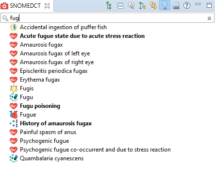 The tree view displays the results within the hierarchy showing the matching concepts and their top-level parent. Concepts between the top-level parent and the matching concept are omitted.