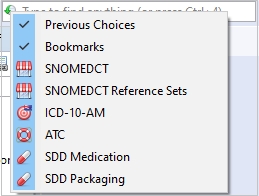 Once you start typing you will see a suggestion to complete your current term appear in light gray. Press the tab key to accept this suggestion and update the matching results. The suggestion takes into consideration your previous choices, bookmarks, concept frequency of use data, mappings, and more when making an autocompletion recommendation. Multi-word terms can be queried by entering the first characters.