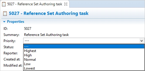 Displays the priority of the task. Priority can be changed at any point during working on the task.