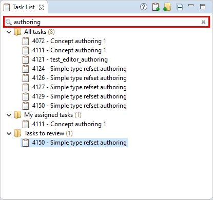 The Task List View is used to view and manage your tasks. Tasks are organized into three groups using queries: All tasks, My assigned tasks, and Tasks to review. Additional queries can be created to further group tasks according to user preferences.