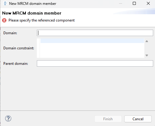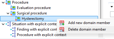 Add new domain member. In this case, the parent domain will be automatically filled and non-editable on open and the domain concept will be restricted to concepts within the parent domain.