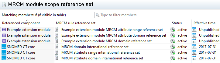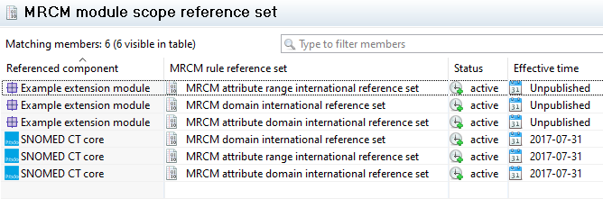 In the first case, no new MRCM reference sets will be created, but three new entries will be added to the MRCM module scope reference set that link the current international reference sets to your extension module as can be seen below.