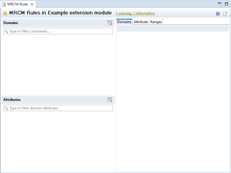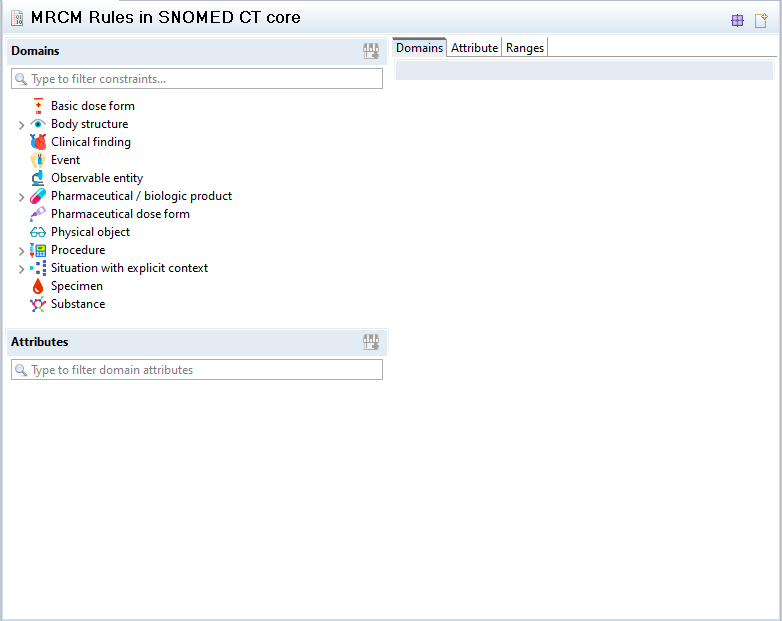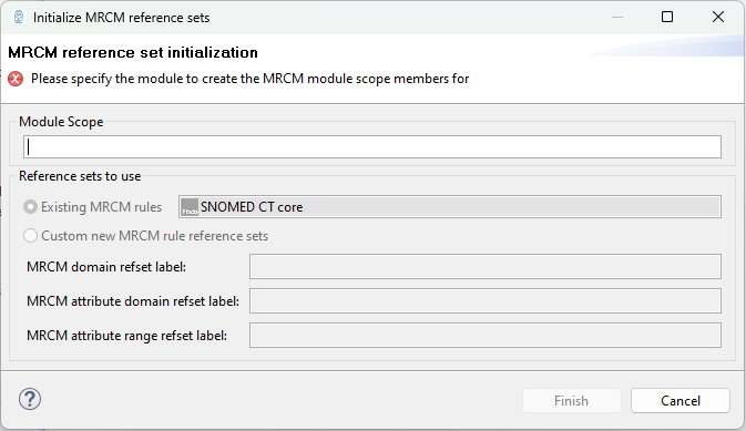 In case you chose to maintain MRCM rules in custom new reference sets, the editor will still be empty as adding MRCM members is yet to be done. In case you chose to use an existing rule set those rules will appear in the MRCM editor now.