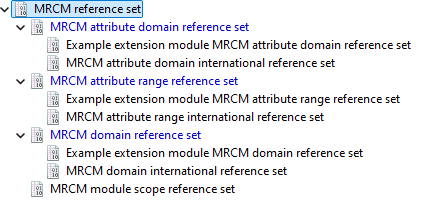 The MRCM rules are maintained in RF2 format by a set of reference sets; the MRCM module scope reference set, and implementations of the MRCM domain reference set, the MRCM attribute domain reference set, and the MRCM attribute range reference set.
