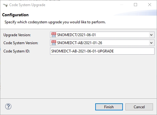 3️⃣ Press the Upgrade Code System... button and chose the Code Systems that take part in the upgrade process. Then press Finish to start the upgrade process.