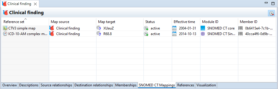 The SNOMED CT Mappings Page shows if the concept is part of any Map type Reference Sets.