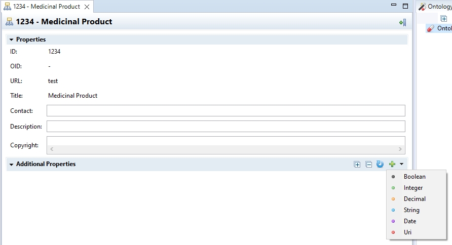 Using the Local Code System Editor, Local Code Systems can be further configured by defining the properties for its Local Codes. For adding and defining these Additional Properties click on this button at the right end side of the Additional Properties section bar.