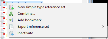 Combining Reference Sets can be performed either by invoking the Tools > Combine Reference Sets… menu or by right-clicking on a Simple type Reference Set and selecting Combine reference sets....