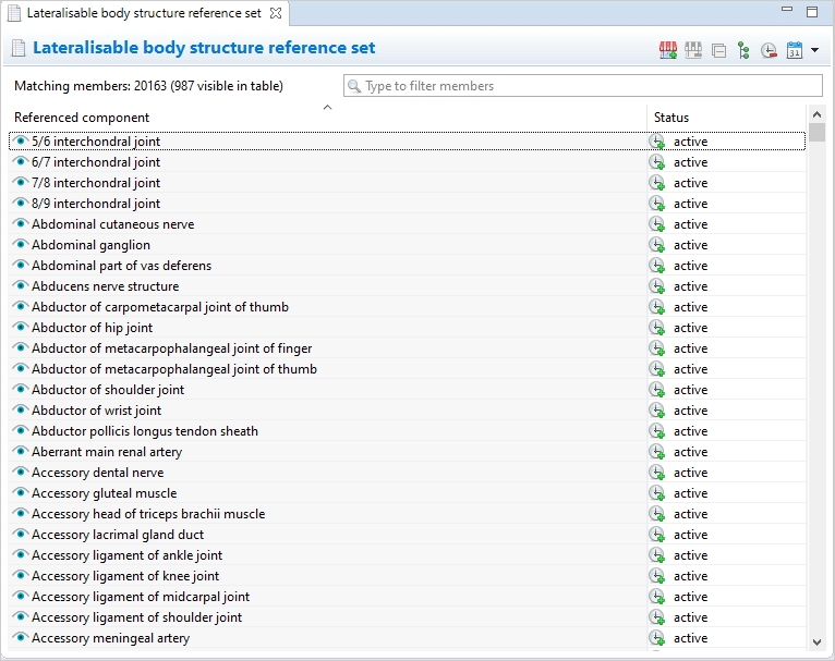 For working with the Reference Set members you need to open the Reference Set in an editor where the list of members can be viewed in a table. You can open a Reference Set similarly as a concept: by double-clicking on it in the Reference Sets View.